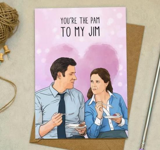 This is the ultimate Valentine’s day card for fans of the Office. Show your true love using the best romance story on television with this “You’re The Pam To My Jim” card. With a giant heart on the front and custom artwork of Jim and Pam just about anyone’s heart will melt when they receive this card.